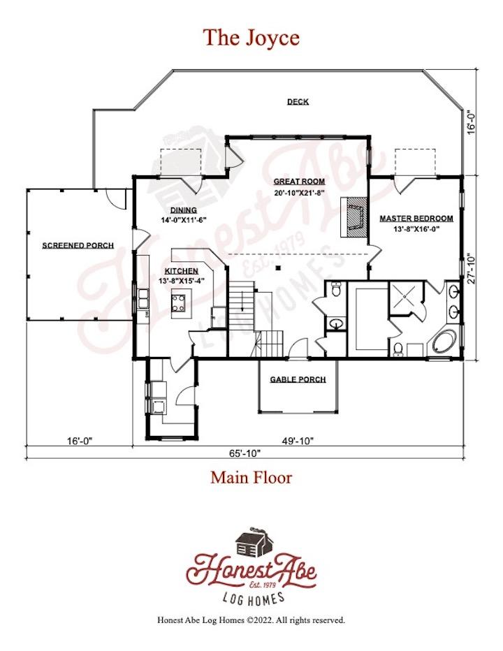 The Joyce is a custom floor plan based of our Westport but customized by a couple who were planning for retirement. They created a first floor with a private master suite with access to the rear deck. The living space’s open floor plan creates an easy flow among the great room, kitchen and dining area. A screened-in porch may be entered though the deck to the rear or directly from the living space.